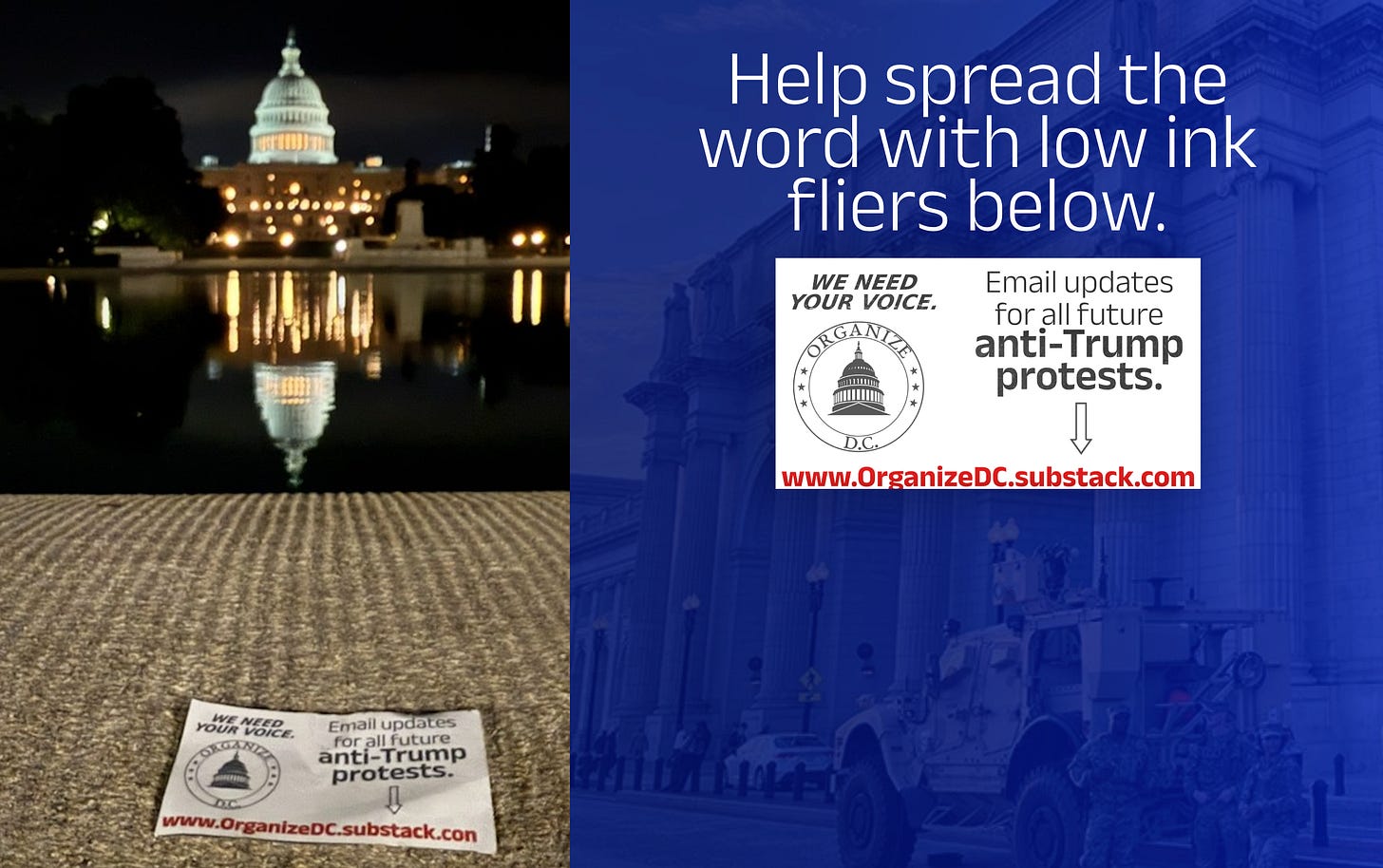 Welcome back to Organize DC– a weekly newsletter helping protestors/organizers peacefully connect, collaborate, and demonstrate against the executive overreach of the Trump administration.